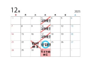 12月24日(水)は営業します。それに伴い23日(火)は臨時休業です。 最低気温が氷点下になるのも珍しくない季節になりました。あんなに暑かったのがつい先日のような気がしますね。当地域は雪はさほど降りませんが、気温か低く道 […]